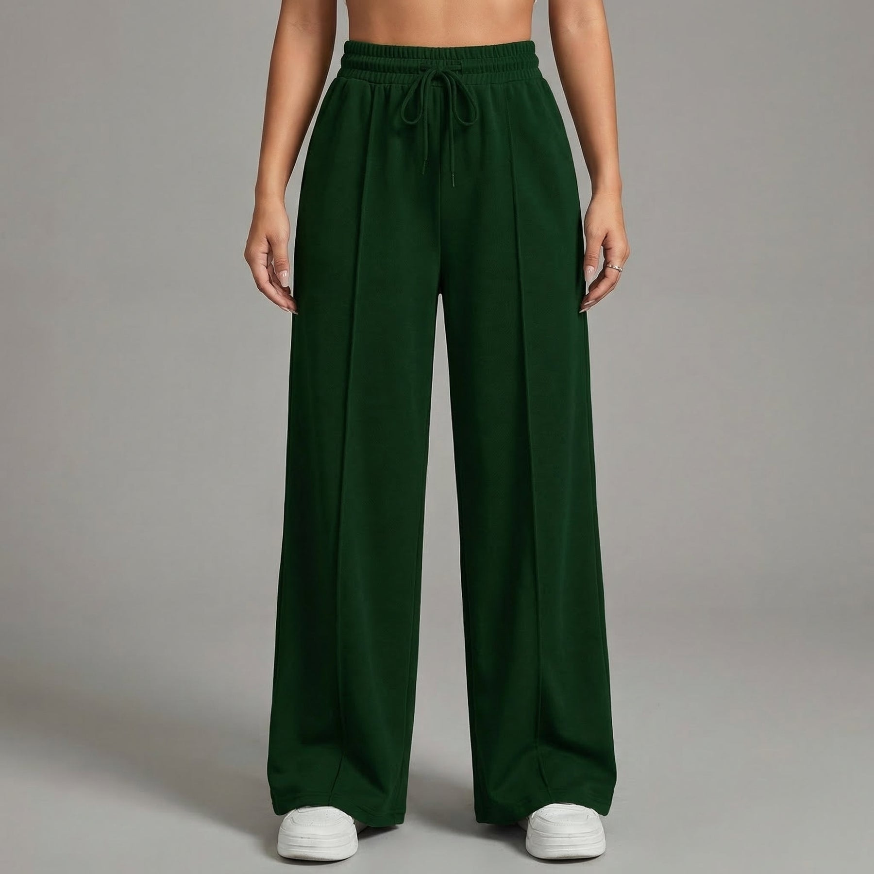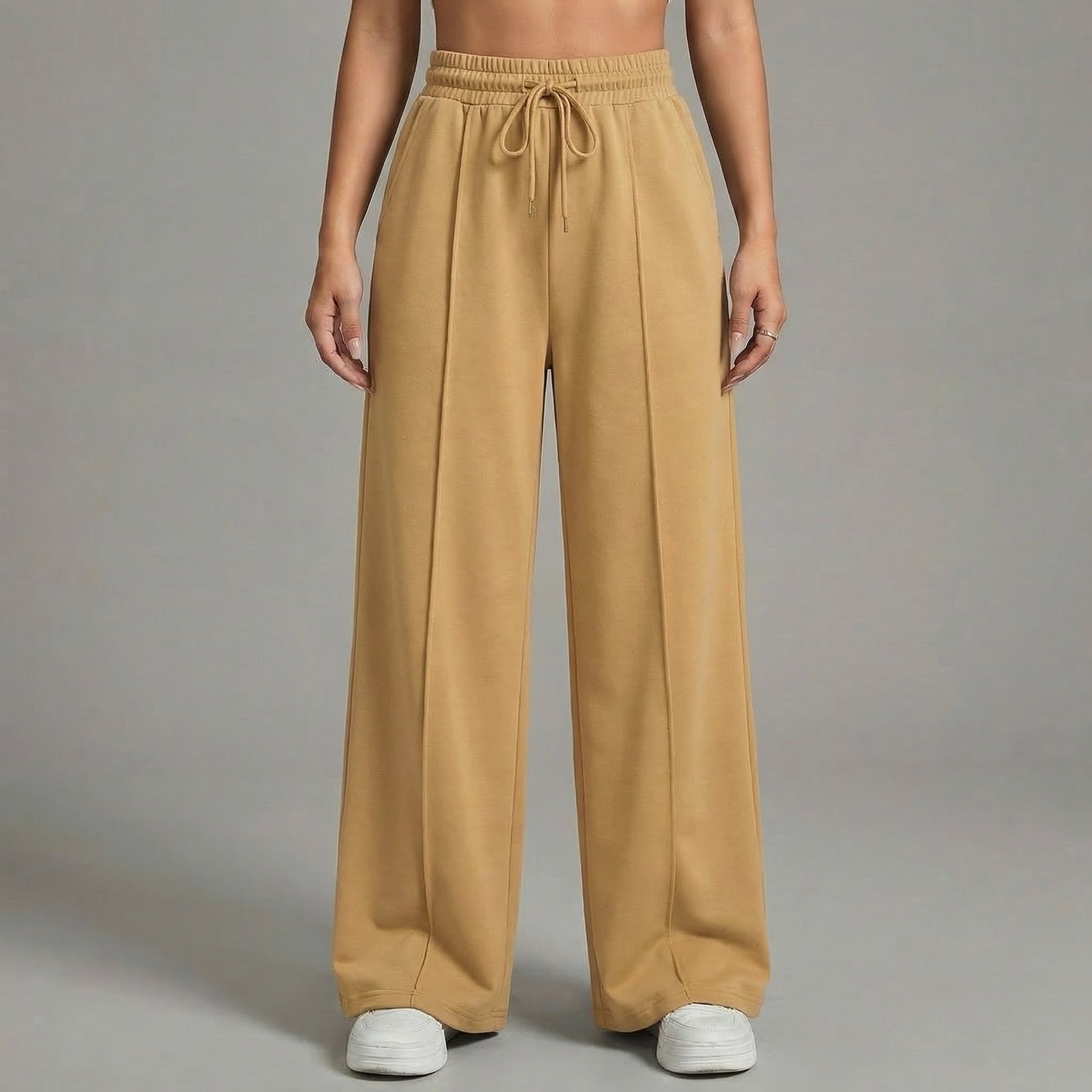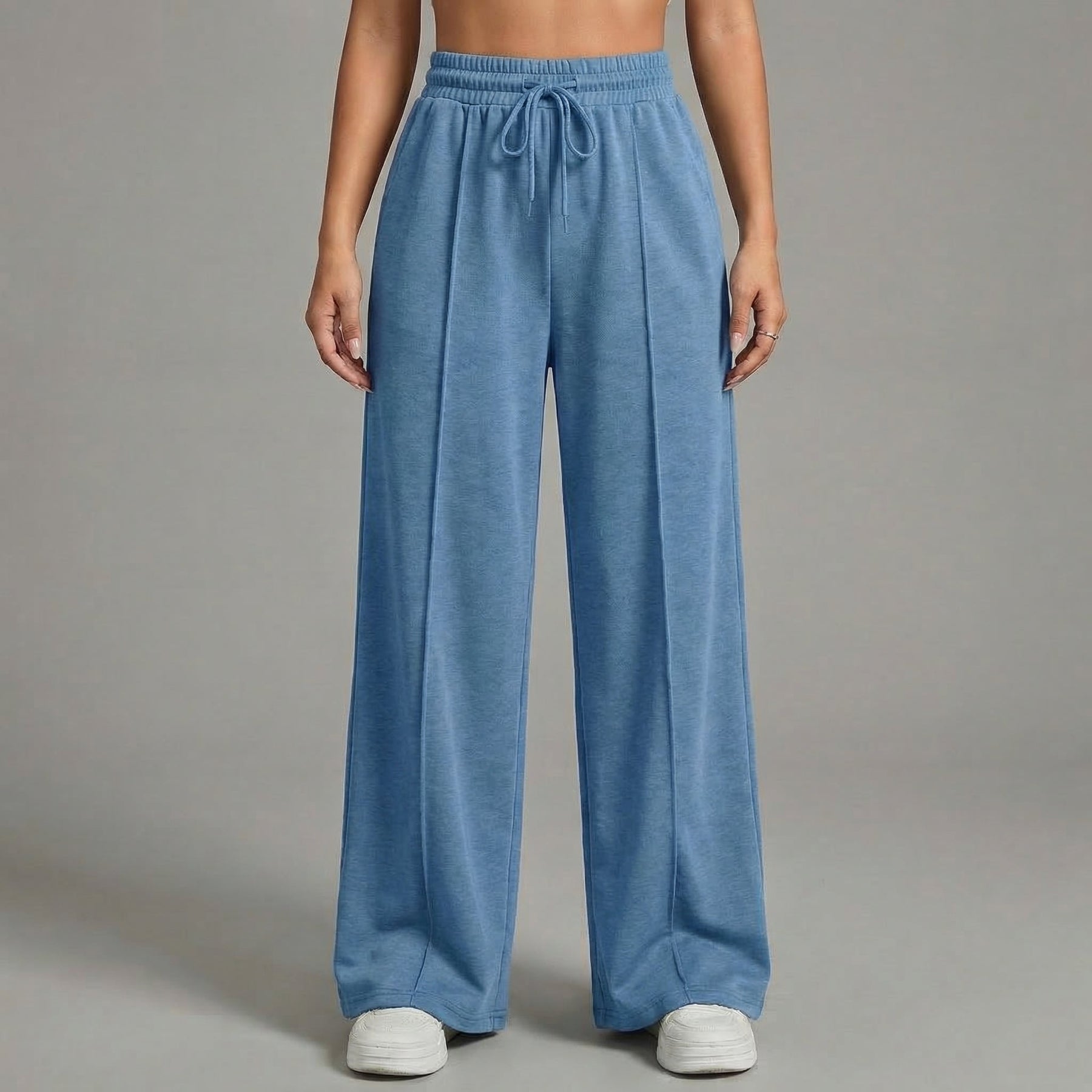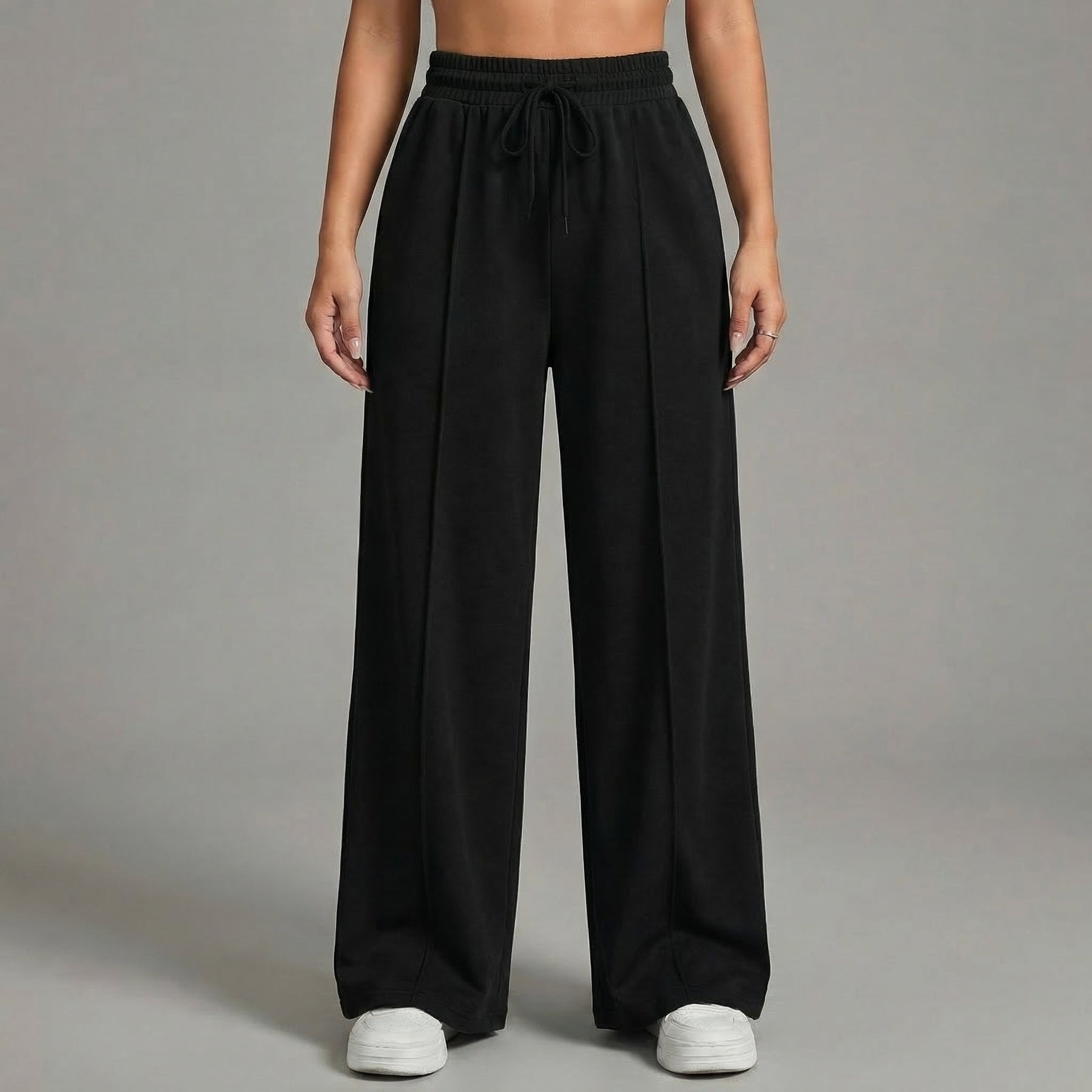 Elevate your casual style with our High-Waisted Wide Leg Drawstring Trousers, featuring a chic front pintuck seam for added elegance.