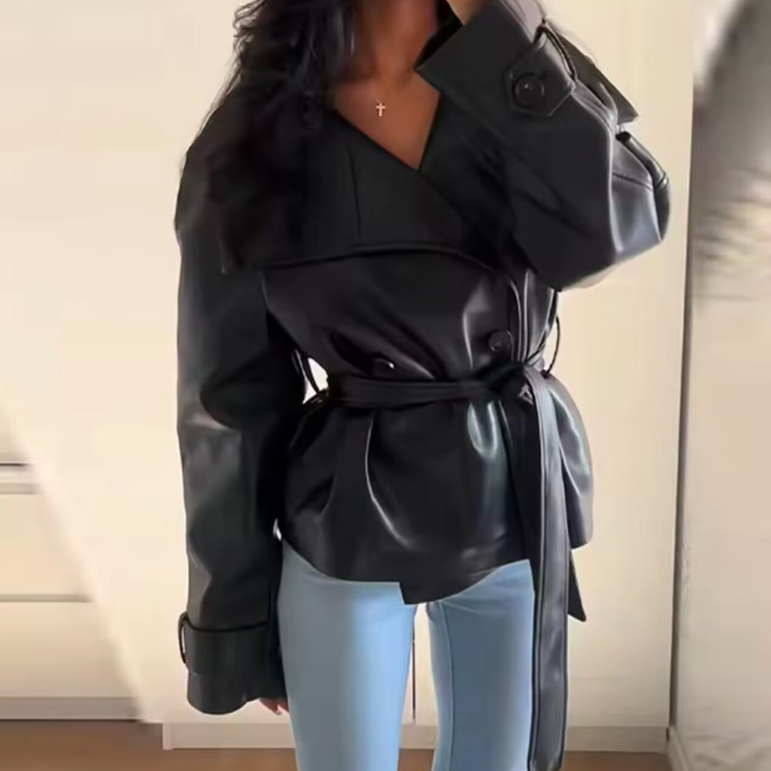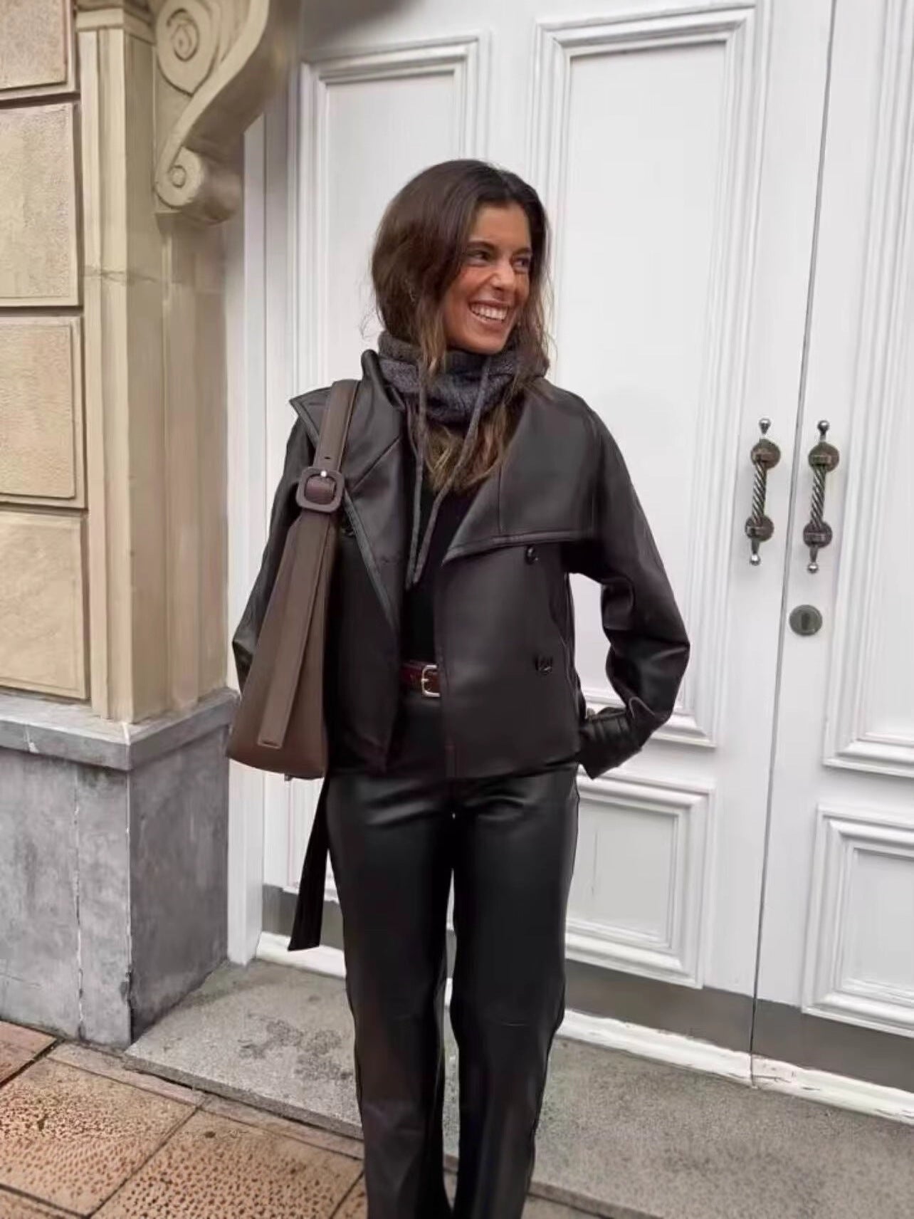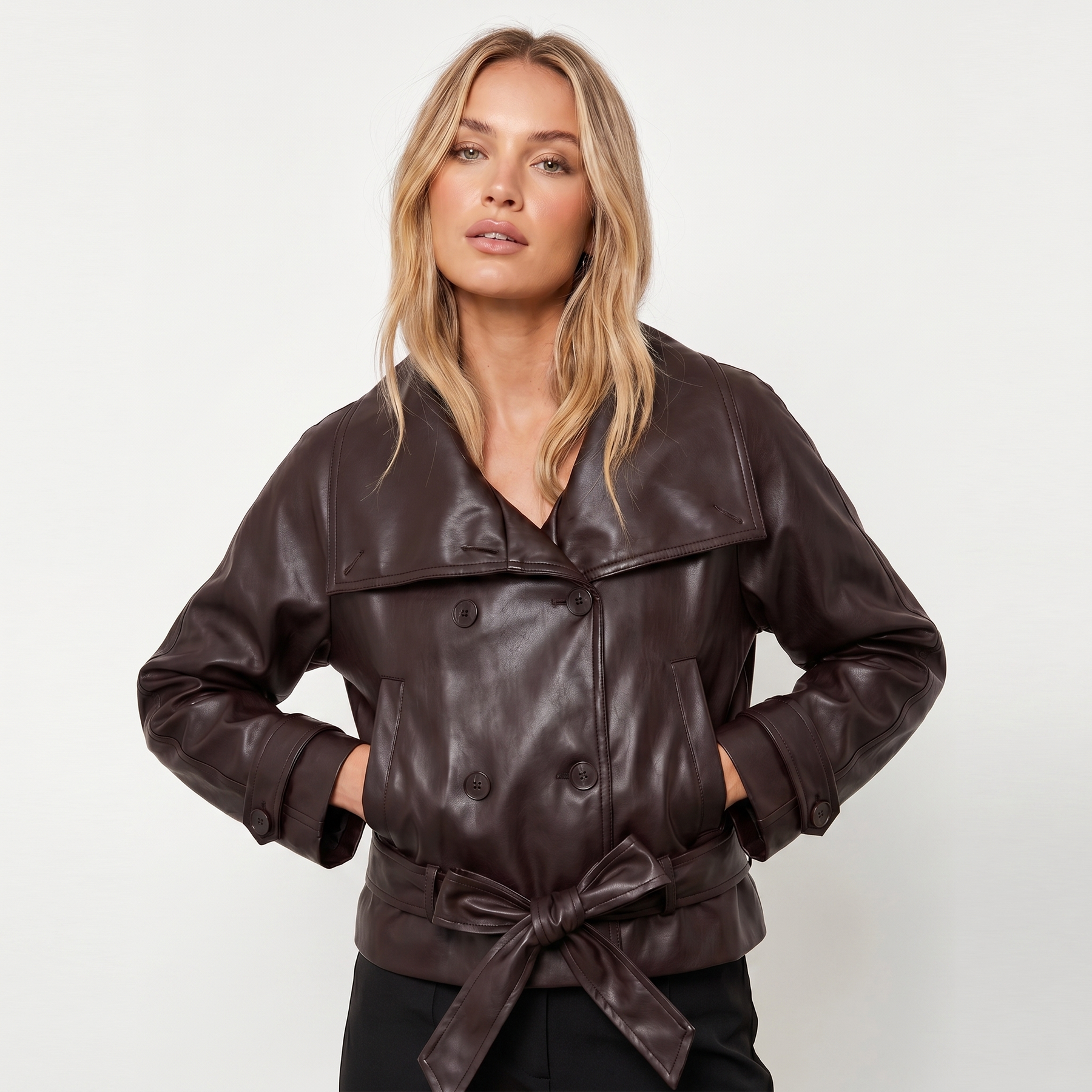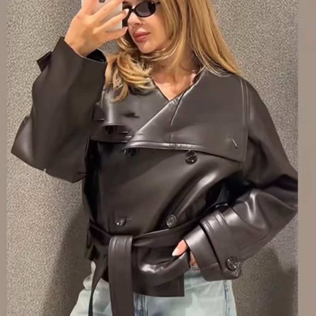 Women's Oversized Cropped Faux Leather Moto Biker Jacket