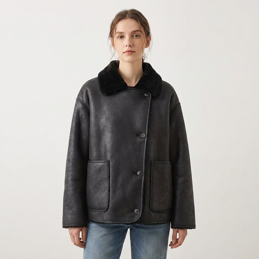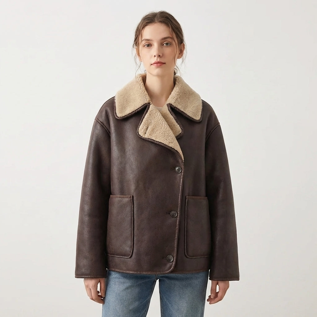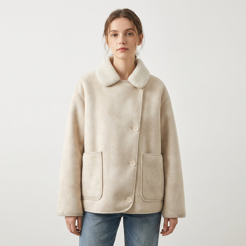 Elevate your winter style with this luxurious oversized faux suede jacket featuring a plush shearling collar.
