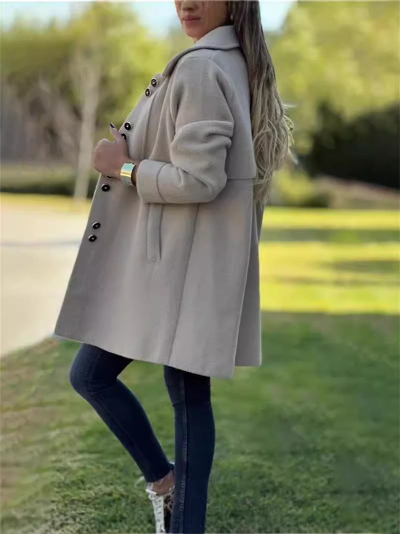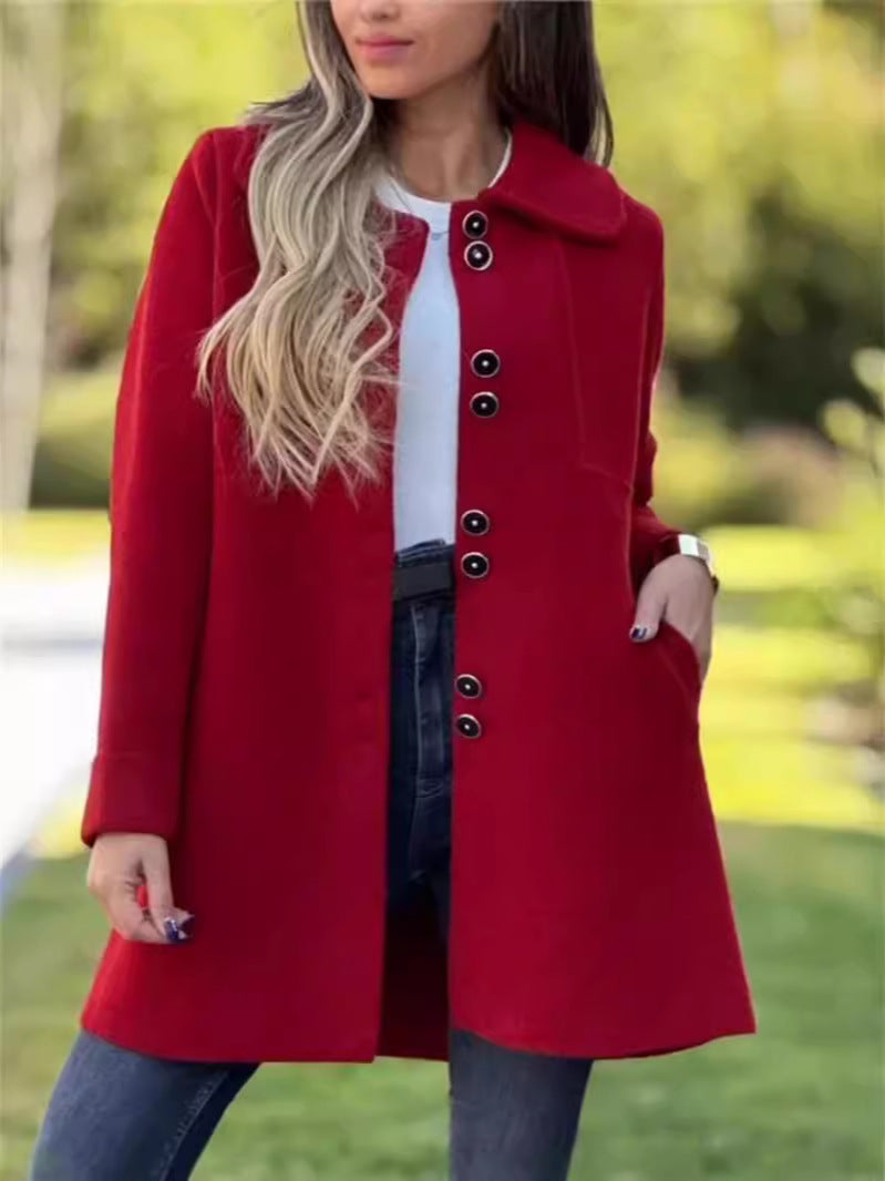 Women's Wool-Blend Collar Coat Elegant Mid-Length Peacoat