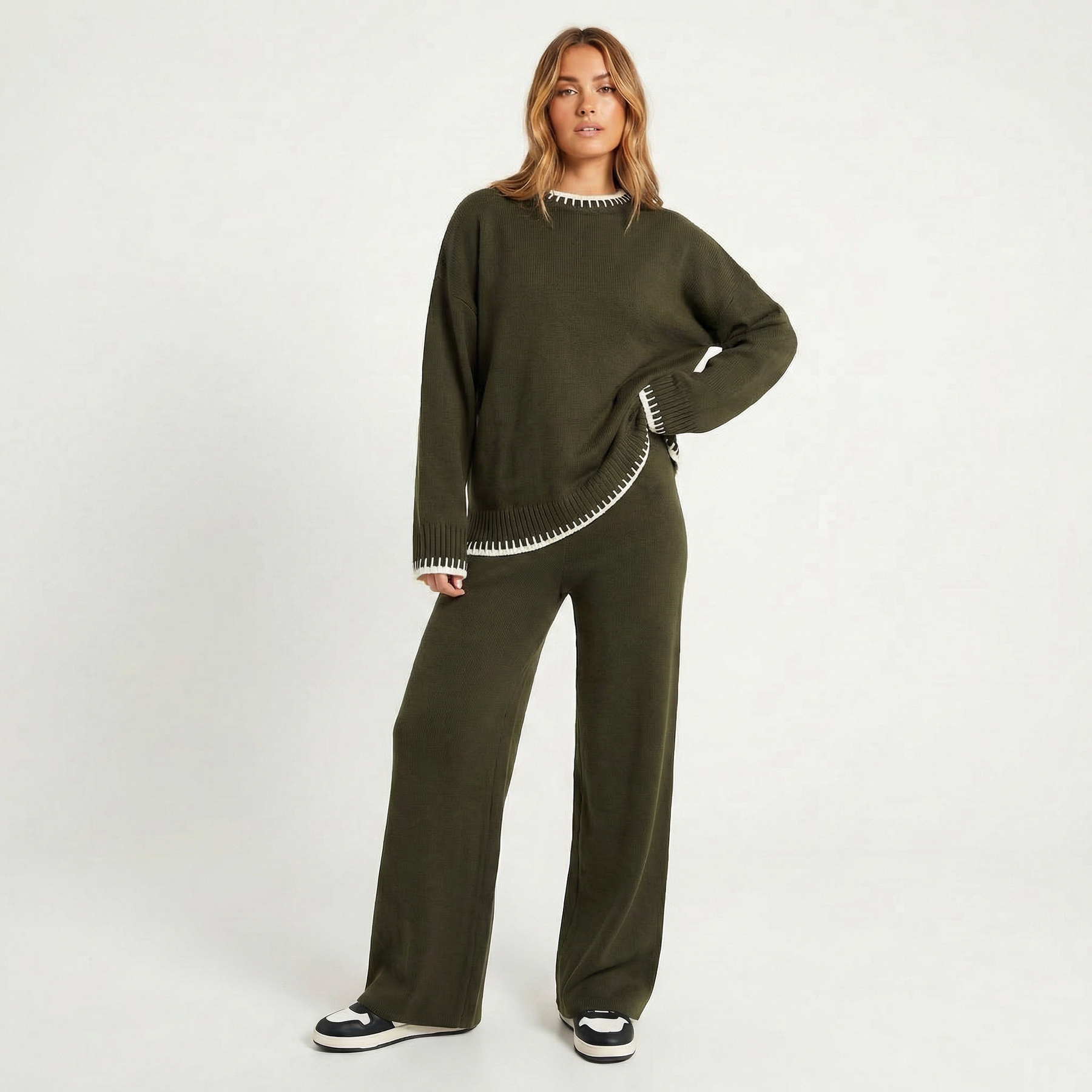 Discover the Women's Loose Two-Piece Knit Sweater Set, a chic and cosy matching co-ord that enhances any casual outfit.