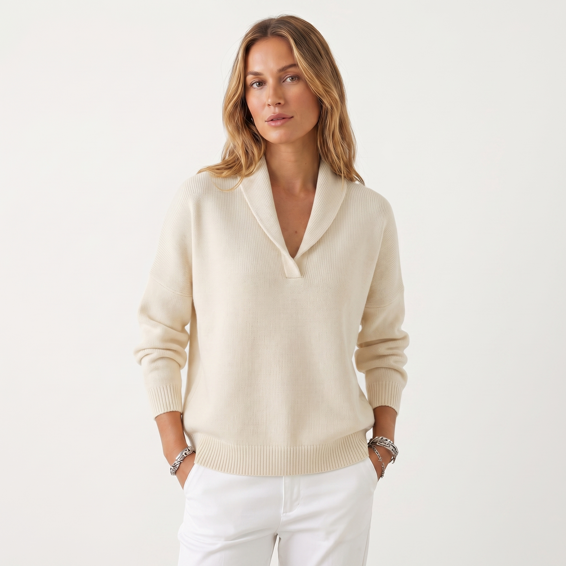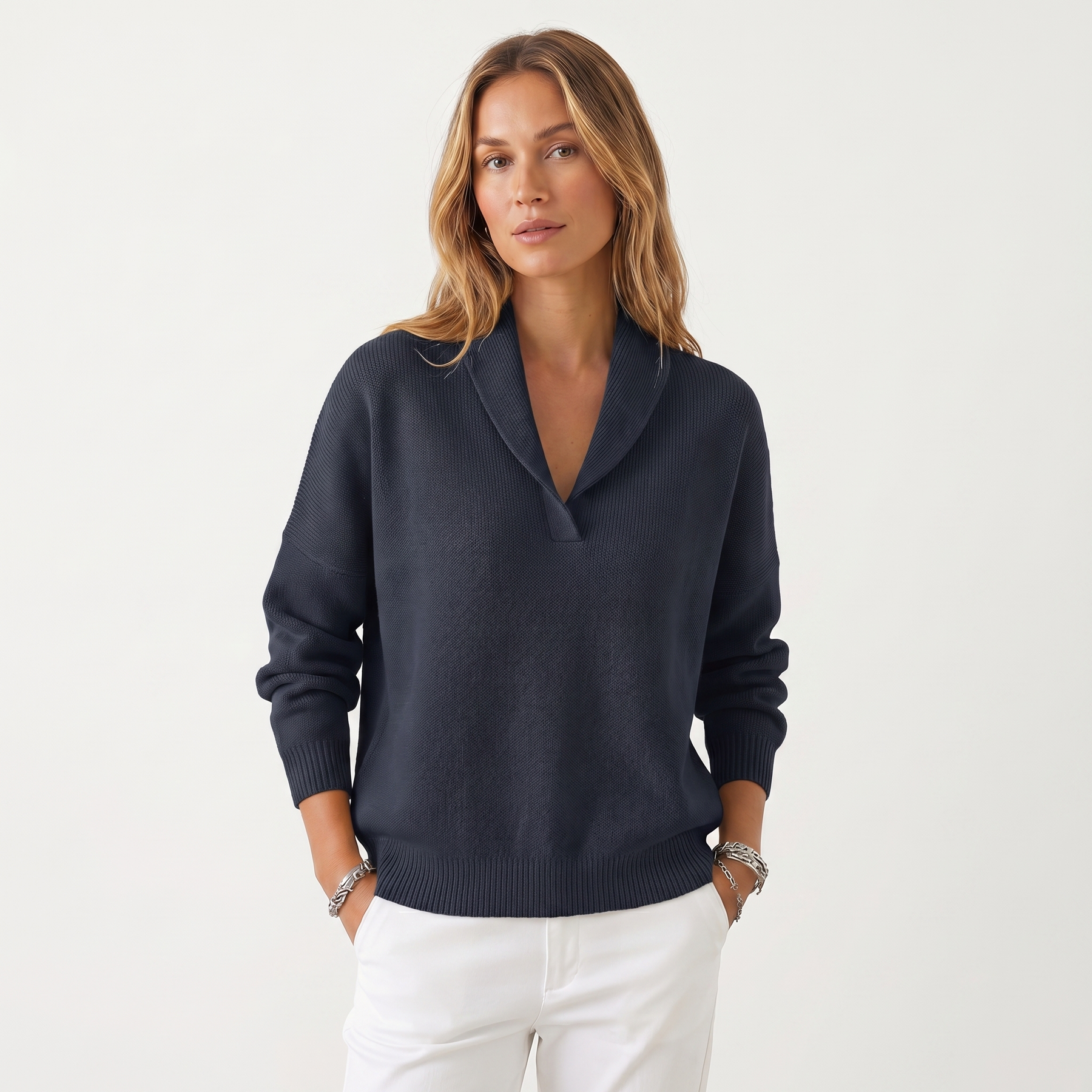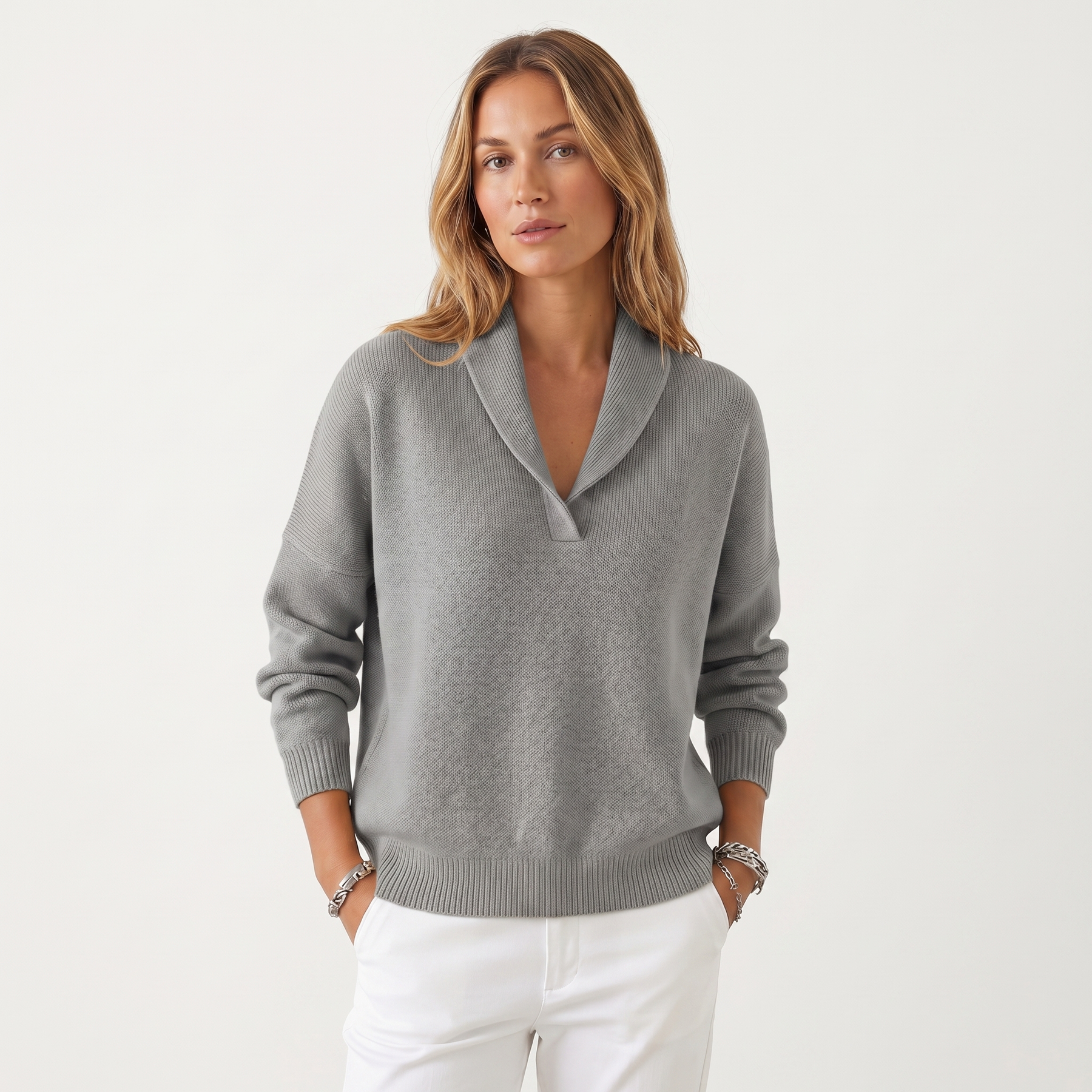 Knitted Sweater - Flattering V-Neckline and Relaxed Fit